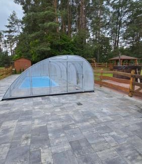 Offering free bikes, Certówka provides accommodations in Świerkocin. This property offers access to a terrace, free private parking, and free Wifi. On clear days, guests can head outside to enjoy the vacation home's outdoor fireplace or simply kick back and relax. The air-conditioned vacation home consists of 4 bedrooms, a living room, a fully equipped kitchen with a dishwasher and a coffee machine, and 2 bathrooms with a bath and a hair dryer. A flat-screen TV with cable channels and DVD player, as well as a CD player are featured. There's also a seating area and a fireplace. For guests with children, the vacation home offers outdoor play equipment. Guests can swim in the indoor pool, go cycling or fishing, relax in the garden, and use the barbecue facilities. Olsztyn Bus Station is 22 miles from Certówka, while Olsztyn Stadium is 22 miles away. Olsztyn-Mazury Airport is 33 miles from the property.
