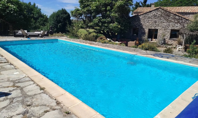 Cévennes house with swimming pool for 12 people is located in Navas. Cévennes house with swimming pool for 12 people provides accommodation, featuring Internet, Wellness Facilities, Fireplace/Heating, among other amenities. This Villa features Internet, Wellness Facilities, Fireplace/Heating, to make your stay a comfortable one.