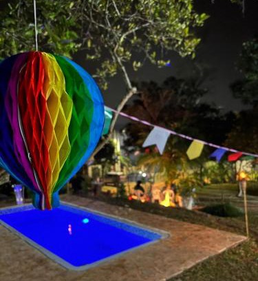Providing an outdoor swimming pool, Chácara Milk & Shake features accommodations in Cotia. This property offers access to a terrace and free private parking. The country house also offers facilities for disabled guests. With free Wifi, this country house provides a cable flat-screen TV, a washing machine, and a fully equipped kitchen with an oven and microwave. Guests can take in the views of the pool from the balcony, which also has outdoor furniture. For added privacy, the accommodation features a private entrance. A mini-market is available at the country house. The country house also provides guests with outdoor fireplace and a picnic area for a day outdoors. Morumbi Stadium - Cicero Pompeu de Toledo is 24 miles from the country house, while Pacaembu Stadium is 28 miles away. The nearest airport is Sao Paulo/Congonhas Airport, 30 miles from Chácara Milk & Shake.