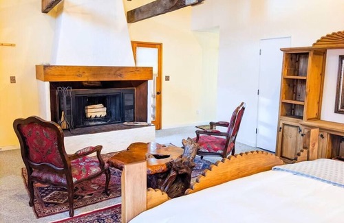 Spanning an impressive area of over 5,500 square feet, the Château des Montes affords guests spectacular views of the Sangre de Cristo Mountains and the Rio Grande Valley from every room. Its advantageous proximity to the Taos Ski Valley and the town center places guests at the nexus of convenience and natural beauty. The property itself extends over an acre, providing a tranquil setting for guests to relax and rejuvenate.