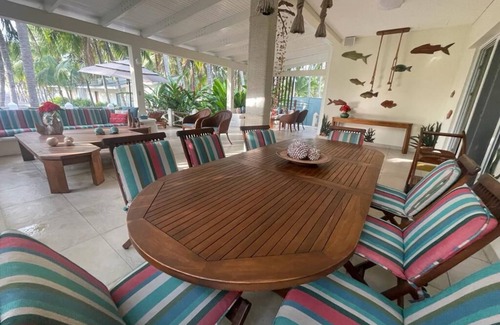 Diviértete con toda la familia en este elegante lugar. Esta es una casa de cinco dormitorios ubicada dentro de un condominio en Chulamar con seguridad y fácil acceso. Tenemos una piscina privada, así como una bañera de hidromasaje, dos bungalows separados y hermosas vistas al océano.