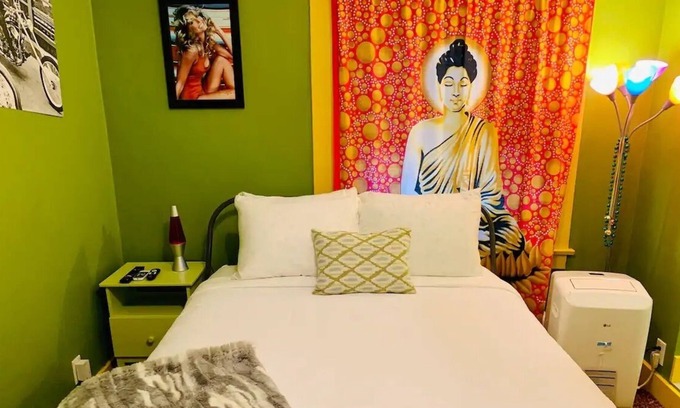 Go back in time to this amazing ’70s machine-theme apartment. You will enjoy the vibrant colors, shaggy carpets, lava lamps, and much more! There are even wings and sunglasses if you are looking to rock it out and take some amazing selfies!