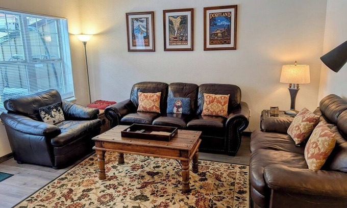 Discover the charm and comfort of our stunningly equipped chalet, nestled in the heart of Government Camp. Perfect for family or friends, this stylish retreat offers a memorable getaway with unbeatable convenience. Stay comfortable year-round with portable air conditioners provided in both bedrooms. Located just steps from local eateries, unique shops, and a well-stocked general store, you’ll have everything you need right at your doorstep. For the adventurous, Collins Lake Resort, The Adventure Park at Mt. Hood Skibowl, and three additional ski resorts are just minutes away, along with the breathtaking Mt. Hood National Forest.
