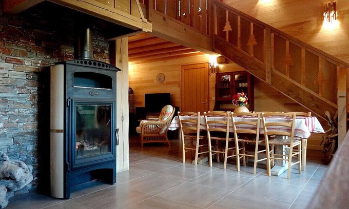 Haven of peace in a sublime region the Chalet 'Les Moulins', made entirely of wood from the region, is located in the Morvan Regional Park at the edge of the Pannecière lake. Warm and elegant, this chalet on 2 levels is heated by a wood stove. The staircase is in centenary oak. The combination of these materials has created a cozy, practical and functional atmosphere.