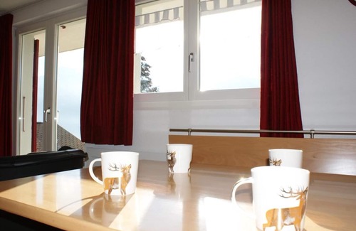 Inside, you will find modern furnishings that leave nothing to be desired. The flat has an open-plan kitchen with oven and fridge, which was completely renovated in 2006. A TV set with Swisscom TV, a stereo system and a wireless LAN broadband Internet connection provide entertainment. There is also a cosy room with a double bed and another room with a practical bunk bed, including a shower room with WC.