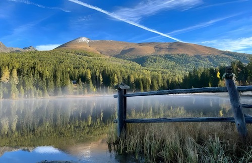 The vacation home is situated close to numerous cycling and hiking trails, offering direct access to nature. Ski slopes are approximately 10 km away, while restaurants, shops, and other amenities are nearby. The area also boasts 60 scenic mountain lakes, ideal for day trips and exploration.