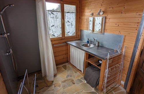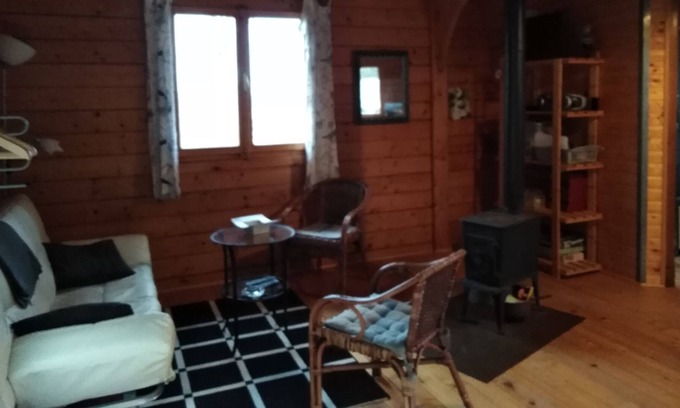 We welcome you for a weekend (160 euros all inclusive), a week or more in our 60 m² chalet cottage. Completely independent and equipped, 50 meters from your host's residence, you can spend a moment there with complete peace of mind. A mezzanine bedroom, a beautiful living room with wood stove and equipped kitchen, Italian style shower room.