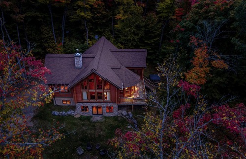 Luxurious 5 bedroom log cabin with hot tub located steps away from Lake Lacoste.