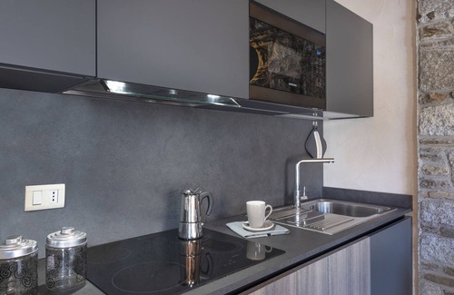 The property offers a unique and charming atmosphere, thanks to a living area designed for romantic moments: imagine curling up on the sofa while the fireplace crackles warmly, and through the roof window, enjoy a spectacular view of the starry sky. The living area, in addition to a fully equipped kitchen and a dining area overlooking the terrace, includes a cozy and intimate corner perfect for relaxation.
