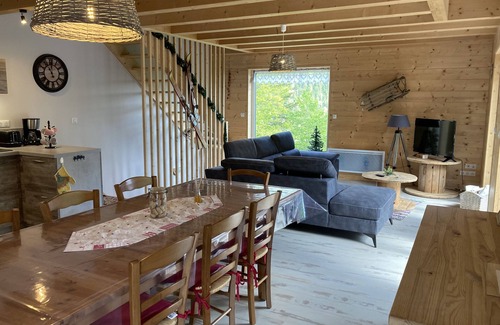 Close to ski slopes and hiking trails, including the GR400, this triplex is ideal for spending a good time in a group. Featuring a large living room/open and fully equipped kitchen (kettle, Tassimo coffee machine, raclette appliance, dishwasher, refrigerator/freezer, oven, microwave,...) with an unobstructed view of the mountain, 4 bedrooms, 1 mountain corner, 2 spacious bathrooms with toilets, and a separate toilet at the entrance of the house.
