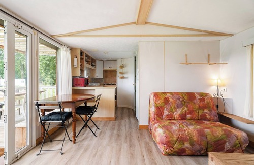 The chalet en pleine nature is located in Broons and is the ideal accommodation for a relaxing getaway. The 25 m² property consists of a living room, a well-equipped kitchen, 2 bedrooms and 1 bathroom and can therefore accommodate 4 people. Additional amenities include a washing machine as well as children's books and toys. Furthermore, a shared sauna is available on the property. This accommodation does not offer: Wi-Fi, air conditioning and towels. Enjoy the convenience of a private barbecue for cooking delicious meals during your stay.