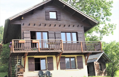Chalet familial dans un superbe emplacement avec vue splendide, à l’écart de la route en bordure d'un hameau, sans aucun vis-à-vis. Un balcon plein sud plus une grande terrasse ombragée avec vue sur le village, les montagnes et la forêt. Un jardin où les enfants peuvent jouer en toute sécurité. Les balades et pistes de ski de fond et de VTT partent du chalet. Ambiance nature, vous ne serez dérangé ni par les voisins ni par la route.
