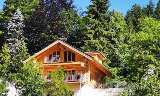 Amidst the beautiful mountain landscape of the Ammergau Alps and with unobstructed views of the imposing Ettal Abbey, our exceptional log cabin (Chalet-Ettal), completed in June 2019, is situated on a south-facing slope. The individual and cozy construction and equipment give your stay a retreat from your everyday life. The chalet consists in the entrance area (ground floor) of a quaint open space area with living area and dining area and a modern and fully equipped kitchen with cooking island. From here, you will reach the individual open gallery in the 1st. Floor and also the basement through a unique steel staircase with wooden steps. The gallery is a perfect place to relax and enjoy the magnificent view over Ettal or just watch TV. In the basement you have a bathroom en suite with a freestanding bath and a double bed, a second bedroom with double bed and a separate shower room with toilet. Both bedrooms have a built in wardrobe and floor to ceiling balcony doors. From each floor you can exit from each room to a south-facing spacious balcony. A parking space is located next to the chalet. Guest gift: For our guests, the KönigsCard is free during your stay with many advantages. z. • No additional costs for excursions and entrance fees • Free bus driving • Free parking with the guest parking card on all municipal parking lots in the region • Unlimited experiences for your holiday in the whole "KönigsCard Land" • Varied offer "Bad weather program" • KönigsCard Free adventure guide Here are some examples from our immediate region: Ettal • Cheese Dairy 1 x per stay free participation in the presentation incl. Linderhof cheese tasting • Royal lodge in the Linderhof castle garden Free admission to the exhibition once a day From Lynder-Hof to Oberammergau Castle • Piston chairlift 1 x daily free ascent and descent in winter 1 x 3-hour ski pass daily (ski pass required: at least 2 nights) • Naturzeit climbing forest 1 x daily 3 hours Climbing including complete equipment and safety training, attention! currently closed • Focus Bikepark 1 x per stay free use of the bike park (4-hour ticket) • Laber cable car 1 x daily free ascent and descent (at regular times) • Erlebnisbad WellenBerg 1 x daily free admission for 3 hours for the swimming area • Passion Theater 1 x daily free admission with guided tour (+ Oberammergau Museum incl. Exhibitions + Pilatushaus incl. Exhibition) • Oberammergau Museum 1 x daily free admission to the museum incl. Exhibitions (+ Passionstheater + Pilatushaus incl. Exhibition) • Pilatushaus 1 x daily free entry to the Pilatushaus with exhibition (+ Oberammergau Museum incl. Exhibitions + Passionstheater) • Sports Center Papistock 1 x per stay free eBike for one day (subject to availability) • Reptile House Oberammergau free entry once a day Unterammergau • Erlebnisberg Steckenberg summer toboggan run: 1 x daily 1 free ride More free leisure activities in Murnau, Garmisch- Partenkirchen, Farchant and Mittenwald can be found at www. royal card. com