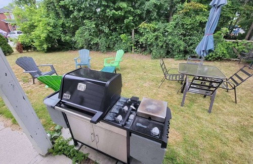 Full renovation Dec 2021. Location Location Location. Apartment is located 2 minute walk (timed) to the sandy beach just down the street from the house. And 1 minute walk to Belle Ewart Park. It has basketball court, playground for kids and another sandy beach for you to enjoy. Both are very close. Very large and open concept 2 bedroom apartment. With King and queen beds. New appliances. Big screen TV for your enjoyment with lots of movies and PS3. Bbq on a backyard. Canoe use included with life jackets. Located on Ground floor with exit to backyard and front yard. No steps at all.