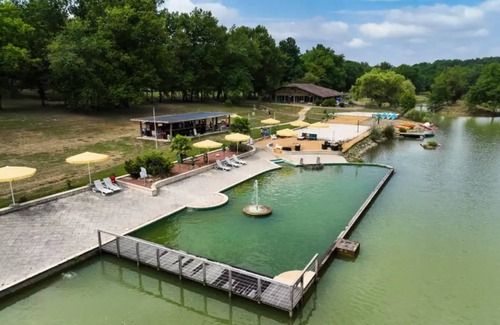 **Welcome to Camping Escapades Les Lacs d'Armagnac **, a tranquil retreat nestled in a lush 54-hectare park.