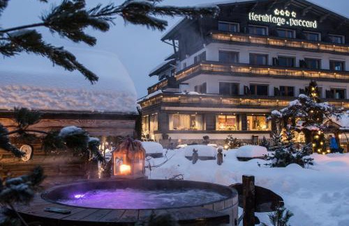 Located in Chamonix-Mont-Blanc, just 5 minutes' walk from the train station and town center and 0.9 mi from Aiguille du Midi Ski Elevator, Chalet-Hôtel Hermitage offers views of Brevent and Mont-Blanc. The hotel, open since 1920, features a relaxing alpine garden featuring 3 outdoor saunas, a pond and a spa bath. Free WiFi is offered. Guest rooms at Chalet-Hôtel Hermitage offer a flat-screen TV with cable channels. They each have a modern bathroom and a private balcony with mountain views. Ski storage is provided. Breakfast is available and can served in the guest room. we have an accommodations rental service: apartments and chalets - fully independent - without hotel services. Guests have access to exterior saunas. A bus serving the ski slopes stops 328 feet away. Free private parking is provided.