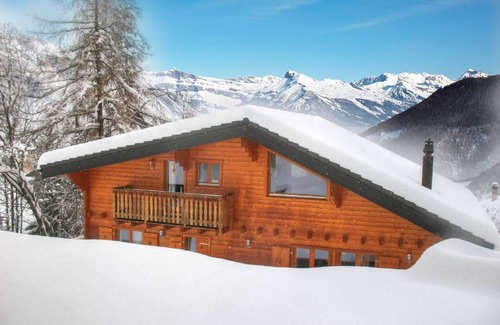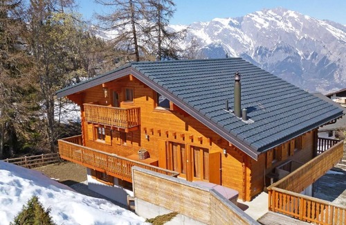 Distance to ski area: ~350 m Comfort chalet full of charm and ambience. Upscale living comfort with sauna, open fireplace, whirlpool and free WLAN. Six bedrooms have access to a terrace or balcony. Favourable location about 350 m from the express gondola lift and the ski slope; La Tzoumaz-Verbier-Quatre Vallées ski area with 410 km of pistes, 95 lifts. A 'holiday of short distances', because you don't need a car for skiing, après-ski and shopping. To the village centre with shops, restaurants, childcare~150 m on foot (not signposted). To the ski school, ice rink and indoor swimming pool ~350 m. Beautiful hillside location on the edge of the forest. The historic 'Bisses' hiking trail starts directly at the chalet (summer).