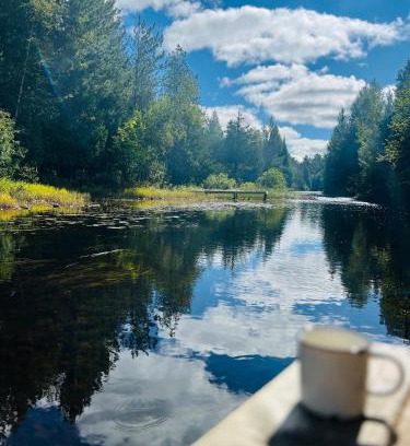 Offering a garden, Chalet -Havre au bord de l'eau offers accommodations in Chertsey. This property offers access to a terrace, free private parking, and free Wifi. On clear days, guests can head outside to enjoy the chalet's outdoor fireplace or simply kick back and relax. The air-conditioned chalet consists of 2 bedrooms, 2 living rooms, a fully equipped kitchen with a dishwasher and a coffee machine, and 2 bathrooms with a bath and a hair dryer. Towels and bed linen are featured in the chalet. There's also a seating area and a fireplace. Guests at the chalet will be able to enjoy activities in and around Chertsey, like canoeing and hiking. Skiing and fishing can be enjoyed nearby, while a ski equipment rental service and a ski pass sales point are also available on-site. Regional Park Chutes-Monte-a-Peine et des Dalles is 21 miles from Chalet -Havre au bord de l'eau, while Club de Golf Montcalm is 15 miles away. Montréal–Mirabel International Airport is 43 miles from the property.