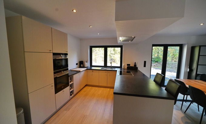 This chalet is ideally located on the edge of a large forest massif about 10 km from the center of Durbuy. The chalet was recently completely renovated and has a spacious living room (Proximus TV) with an equipped open kitchen, three bedrooms with double Queen size box spring bed and two bathrooms with walk-in shower. The chalet has a large terrace with a wood-fired hot tub at the back. The chalet gives direct access to a large forest area that almost extends to the town of Durbuy. The nearby express road also ensures good accessibility to Marche-en-Famenne at 10 minutes. The location near Durbuy also gives access to a wide range of activities both indoors and outdoors.