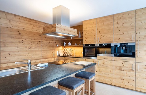 The holiday home is very beautiful and equipped with every luxury imaginable. There are a total of 5 large bedrooms, each with its own bathroom. The living room has a cozy and elegant seating and lounge area and a fireplace. Next to the living room there is the dining area with a large dining table and the open, fully equipped kitchen, which is equipped with every comfort. There is also a storage room for skis with ski boot heaters. From the chalet and the sunny terrace you have a wonderful view of the mountains and the picturesque surroundings. There is a garden around the house and you can park right next to the house.