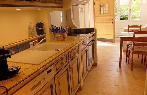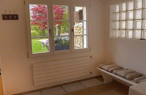 2-room apartment 50 m2, on the ground floor, south facing position. Fully renovated in 2014, beautiful and tasteful furnishings: living room, ceiling height 204 cm with cable TV (flat screen), radio. 1 room, ceiling height 204 cm with 1 double bed (2 x 90 cm, length 200 cm). Exit to the terrace, south facing position. Kitchen-/living room (oven, dishwasher, 4 ceramic glass hob hotplates, microwave, electric coffee machine, Capsules for coffee machine (Nespresso) extra, raclette grill, fondue Set (cheese)), ceiling height 187 cm. Exit to the terrace, south facing position. Bath/WC. Floor heating. Parquet floors, natural stone floors. Large terrace, south facing position. Terrace furniture, barbecue, deck chairs (2). Marvellous view of the mountains. Facilities: washing machine, hair dryer. Internet (WiFi, free). Parking at the house. Please note: non-smokers only. Fire extinguisher.