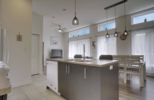 L’Herisson features a 6-person spa that is functional year-round, back yard, access to lake (prived dock), equipped with 2 Kayaks & 1 pedal boat (2 adult's life vests & 2 children's vests included) and has a children swing, closed patio with BBQ and comforters.