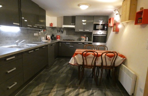Fitted for 2 to 6 people, fitted kitchen with oven, ceramic hob, microwave, dining area for 6 people, fondue set, stone grill, raclette.