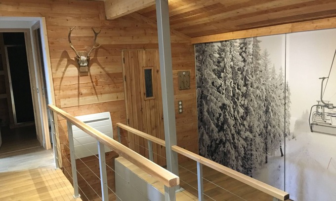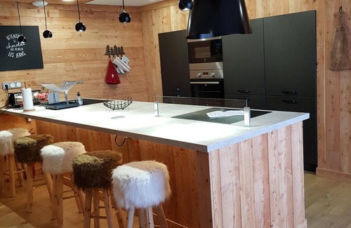 Quality fittings with large integrated kitchen (oven, microwave, dishwasher, induction, American fridge, Nespresso coffee machine, etc.), dining room, large living room (large TV screen, blue ray reading, library, wood stove, etc.), local on skis (with ski rack, boot dryer and gloves, washing machine, dryer ...), 1 bedroom with 2 90x200 beds this 2 bunk beds 90x200, 3 bedrooms with 160x200 bed, 2 bathrooms with shower 120x80, sink and towel dryer, 2 separate toilets.