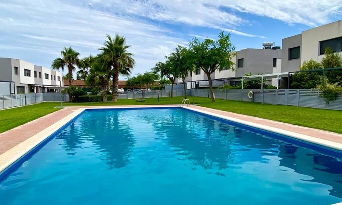 Just a 12-minute walk from La Pixerota Beach and 0.7 miles from Rifa Beach, Chalet moderno con piscina en Mont - roige Bahia features accommodations in Montroig, with an outdoor swimming pool and a garden. This property offers access to a balcony, free private parking, and free Wifi. Outdoor seating is also available at the apartment. Offering a terrace and pool views, the spacious apartment includes 3 bedrooms, a living room, flat-screen TV, an equipped kitchen, and 3 bathrooms with a bidet and a bath. Towels and bed linen are featured in the apartment. For added privacy, the accommodation has a private entrance and soundproofing. Beach El Paraiso is a 16-minute walk from Chalet moderno con piscina en Mont - roige Bahia, while PortAventura is 12 miles from the property. Reus Airport is 14 miles away, and the property offers a paid airport shuttle service.