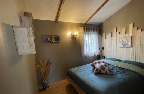 Relax in the garden (enjoy the outdoor furniture!) or sip a drink on the deck or patio of this 646-sq-ft chalet. When you come inside, connect to the free WiFi or get cozy in front of the Smart TV (video library available).