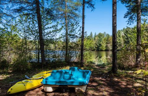 Chalet Natür Lakefront - Hot Tub - Fireplace - Ski - Waterfront - Private big land - Pedal Boat is a recently renovated chalet in Saint-Alphonse-Rodriguez where guests can make the most of the garden and barbecue facilities. This property offers access to a balcony, free private parking, and free Wifi. The chalet has an outdoor fireplace and a hot tub. Providing a terrace and mountain views, the spacious chalet includes 2 bedrooms, 2 living rooms, flat-screen TV, an equipped kitchen, and 1 bathroom with a walk-in shower and a hot tub. Towels and bed linen are provided in the chalet. There's also a seating area and a fireplace. For guests with children, the chalet provides a baby safety gate. Skiing and cycling can be enjoyed nearby, while a bicycle rental service and ski storage space are also available on-site. Regional Park Chutes-Monte-a-Peine et des Dalles is 8.4 miles from Chalet Natür Lakefront - Hot Tub - Fireplace - Ski - Waterfront - Private big land - Pedal Boat, while Club de Golf Montcalm is 11 miles away. Montréal/Saint-Hubert Airport is 57 miles from the property.