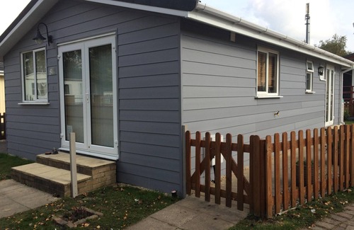 3 bedroom newly refurbished chalet in Matchams, Christchurch. Private fenced garden with patio. There is a pool on site parking for 2 cars. Lake and picnic area attached to site. Nearest beach is about 10 minutes in the car. Christchurch is 10 minute drive away. Local shop is 5 minutes and is open quite late. The site is quiet and friendly. If you prefer to be alone you can be. All residents on site live there, and will always give you advice if required. We have a patio area with table and chairs and a gas bar be q a car is needed for this property.