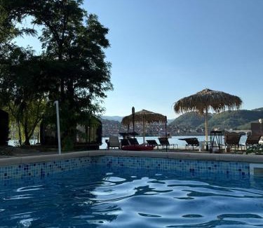 CHALET Orsova in Orşova provides accommodations with an open-air bath, a garden, and barbecue facilities. This beachfront property offers access to tennis at the tennis court, free private parking, and free Wifi. The mountain views are a highlight at the guest house's pool. Some accommodations include a terrace and a seating area with flat-screen TV, as well as air conditioning and heating. At the guest house, each unit includes a private bathroom. For guests with children, the guest house features outdoor play equipment. Cycling and fishing are possible within the area, and CHALET Orsova offers a private beach area. Iron Gate I is 8.5 miles from the accommodation, while Rock Sculpture of Decebalus is 13 miles from the property. Craiova International Airport is 90 miles away.