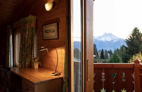 "Chalet Petit Pont", 7-room chalet 270 m2 on 3 levels, south facing position. Comfortable and cosy furnishings: living/dining room with open-hearth fireplace, TV, hi-fi system and DVD. Exit to the terrace, south facing position. 1 large double bedroom with 1 double bed (2 x 90 cm), shower/WC and double hand-basin. Exit to the balcony. Open kitchen (oven, dishwasher, 4 induction hot plates, microwave, electric coffee machine, Capsules for coffee machine (Dolce Gusto) extra, raclette grill). Shower/WC. On the lower ground floor: 1 room with 1 french bed (2 x 90 cm). Large playroom. Shower/WC. Upper floor: 1 large room with sloping ceilings with 2 beds (90 cm). 1 large room with sloping ceilings with 2 beds (90 cm). Exit to the balcony. 1 large room with sloping ceilings with 2 beds (90 cm), shower/WC and double hand-basin. Exit to the balcony. Bath/WC, double hand-basin, hydro massage bath. Small balcony 5 m2, south facing position, large terrace 120 m2. Very beautiful panoramic view of the mountains. Facilities: washing machine, dryer, baby cot. Internet (WiFi, free). Parking (2 cars), garage (2 cars). Please note: non-smoking house. 1 small pet/ dog allowed.