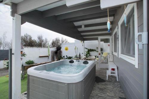 Chalet Puerto Escondido is located in Telde, just 31 miles from Anfi Tauro Golf Course and 16 miles from Parque de Santa Catalina. 21 miles from Yumbo Centrum and 22 miles from Aqualand Maspalomas, the property offers a garden and barbecue facilities. Free Wifi is available throughout the property and Ojos de Garza Beach is a 19-minute walk away. Providing access to a patio with quiet street views, the chalet consists of 1 bedroom. Featuring a terrace with garden views, this chalet also comes with a satellite TV, a well-equipped kitchen with a microwave, a toaster, and a fridge, as well as 1 bathroom with a hot tub and bathrobes. For added privacy, the accommodation features a private entrance. The chalet also features an outdoor swimming pool and a hot tub for guests to relax in. Maspalomas Golf Course is 22 miles from Chalet Puerto Escondido, while Maspalomas Lighthouse is 23 miles from the property. Gran Canaria Airport is 1.2 miles away.