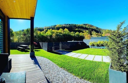 The highlight of this accommodation is its private outdoor area with a a garden, a covered terrace. An outdoor XL Double Bathtub & Shower is available both in summer and in winter. Take a refreshing bath on warm summer days or watch the dance of the snowflakes from the comfortably warm water. If you like, you can also refine the bath water with aromatic bath additives. In addition, we would like to point out that the bathtub is always filled with fresh water, which is a great advantage compared to various whirlpools or pools, as no chemicals, used water etc. are consumed. We can therefore guarantee the best hygiene standards. In addition, a private sauna cabin is available for your use in the outdoor area.