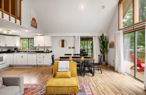 Lookout Lodge is a newly-renovated chalet with modern touches and beautiful views nestled in The Woods Resort. Explore Berkeley Springs and the WV mountains at this unique getaway!