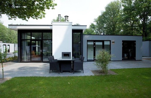 The L-Cube Sauna 4 is a detached, single-storey chalet built in an L-shape. It has a modern and robust look and is suitable for 4 people. Thanks to the high ceiling and large windows, it is spacious and bright. The living area has a seating area with television and a separate dining area. The open kitchen is equipped with, among other things, a dishwasher, microwave oven and a Nespresso Machine. There are 2 bedrooms in total with 2 single beds eachThere is also a bathroom with shower and a traditional sauna. There is also a separate toilet. Outside is a terrace with garden furniture. You can park 1 car at the house and free Wi-Fi is available.