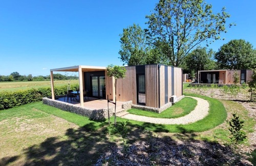 Domus 4+2 is a cosy and stylishly decorated chalet with a wooden look. The detached chalet is on the ground floor, suitable for a maximum of 6 persons and can be entered via a few steps. In the modern living room you will find a sitting area with television, a dining area and a kitchen with all the necessary facilities, such as a dishwasher, filter coffee machine and a refrigerator with freezer compartment. In total there are 3 bedrooms, 1 with a double bed, 1 with a bunk bed (max. 80 kg) and 1 with 2 single beds. The bathroom has a shower, toilet and washbasin. There is also a separate toilet. The chalet is adjacent to a spacious veranda. There is parking space for 1 car and you can connect to the Wi-Fi for free.