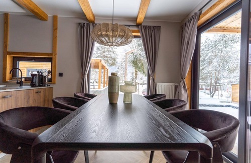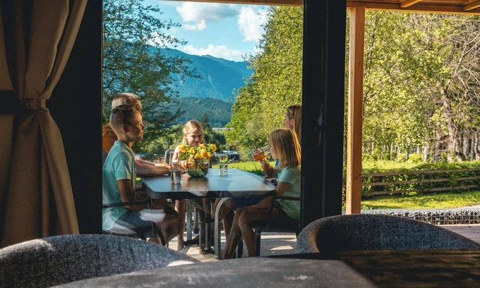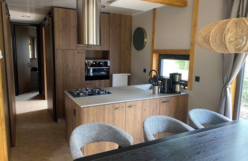 The name says it all: not only does the Panorama Lodge 4-6 have a spacious terrace, but it also offers panoramic views through its many windows. This detached, single-storey chalet can accommodate up to 6 people. The living room has a cosy sitting area with a television, and the large wooden table is perfect for dining together. The open kitchen includes a dishwasher, oven, kettle and coffee maker. There are 3 bedrooms in total: 1 bedroom with a double bed, 1 bedroom with 2 single beds and 1 bedroom with bunk beds. There is also a spacious bathroom with a shower and a separate toilet. Outside, you will find a sun terrace with garden furniture. You can park one car at the property and free Wi-Fi is available.