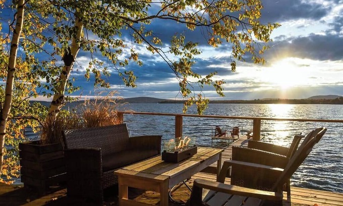 Come and enjoy two huge terraces offering a breathtaking view of Lac Brome. A bohemian and warm decor awaits you, as well as a multitude of activities nearby. Let yourself be tempted by the sauna with a view of the lake, the private dock and the Espresso machine, which will guarantee a unique and extremely comfortable stay. Enjoy the magnificent sunset which illuminates the sky, the lake and the chalet to perfection, creating an ideal atmosphere for happy hour.-CITQ Certified #302869
