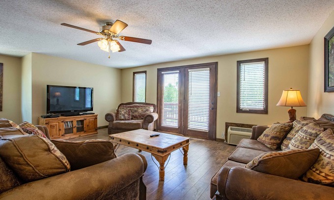 Chalets Resort LAKEFRONT Cottage Free Amenities Dock/Boat Parking Pool & Waterslide is located in Lampe. Chalets Resort LAKEFRONT Cottage Free Amenities Dock/Boat Parking Pool & Waterslide provides accommodation, featuring Air Conditioner, Barbecue/Outdoor Cooking, Hot Tub, among other amenities. This Cabin features Air Conditioner, Barbecue/Outdoor Cooking, Hot Tub, to make your stay a comfortable one.