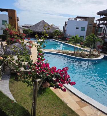 Offering a garden, Chaleville barrinha offers accommodations in Barrinha. This beachfront property offers access to a balcony and free Wifi. The apartment provides parking on-site, an outdoor swimming pool, and full-day security. Providing a terrace and garden views, the spacious apartment includes 2 bedrooms, a living room, satellite flat-screen TV, an equipped kitchen, and 2 bathrooms with a shower. The property has an outdoor dining area. Praia de Barrinha is a few steps from the apartment. Parnaiba International Airport is 46 miles away.