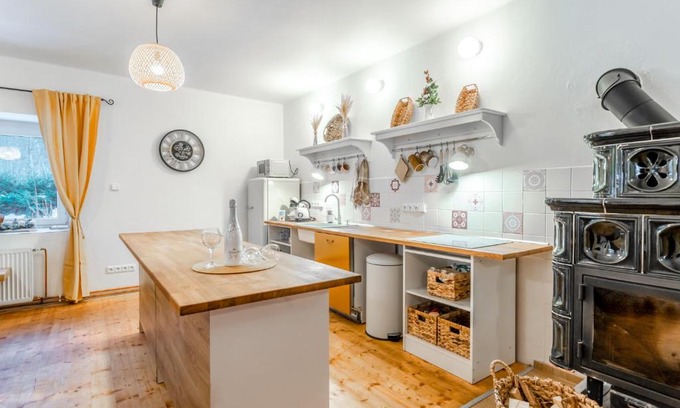 Chalupa U Potoka is located in Malá Morávka, just 10 miles from Praděd and 30 miles from Museum of Paper Velké Losiny. This villa offers free private parking, a shared kitchen, and free Wifi. The property features barbecue facilities and outdoor furniture. Leading onto a balcony with inner courtyard views, the spacious villa consists of 4 bedrooms. Offering a terrace with garden views, this villa also has a flat-screen TV, a well-equipped kitchen with a dishwasher, a microwave, and a toaster, as well as 2 bathrooms with a bath and slippers. There's also a seating area and a fireplace. For guests with children, the villa provides an indoor play area, outdoor play equipment, and a kids' club. Ski storage space is available on-site and skiing can be enjoyed close to Chalupa U Potoka. Ostrava Leos Janacek Airport is 58 miles away.