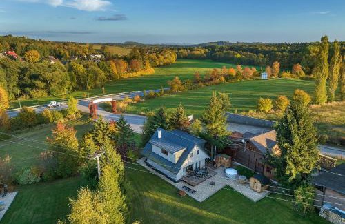 Chalupy pod Liščím Kopcem Vrchlabí offers a hot tub and free private parking, and is within 4.8 miles of Bus Stop Strážné and 29 miles of Szklarki Waterfall. 29 miles from Kamienczyka Waterfall and 29 miles from Szklarska Poreba Bus Station, the property provides an open-air bath and a garden. The accommodation features a sauna, free Wifi throughout the property, and family rooms. All units come with a terrace with mountain views, a fully equipped kitchen with a microwave and a toaster, and a private bathroom with shower. A fridge, a stovetop, and kitchenware are also available, as well as a coffee machine and a kettle. At the vacation home, each unit includes bed linen and towels. Ski equipment rental and free use of bicycles are available at the vacation home, and the area is popular for skiing and cycling. The vacation home has a picnic area where you can spend the day outdoors. Izerska Railway is 29 miles from Chalupy pod Liščím Kopcem Vrchlabí, while Dinopark is 30 miles from the property. Pardubice Airport is 58 miles away.