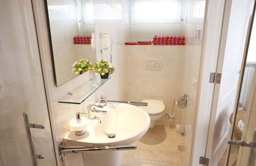 Bathrooms include showers and hair dryers.