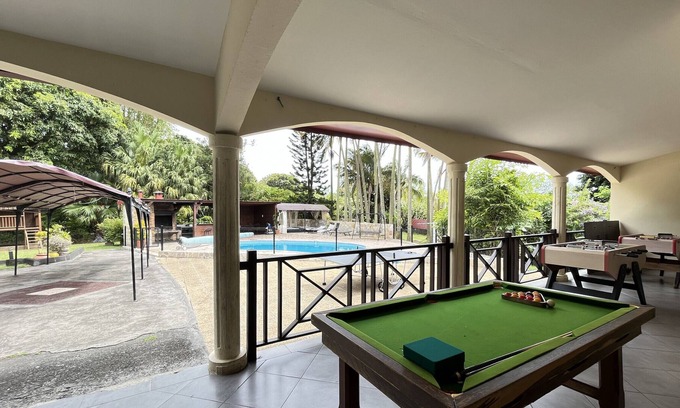Premium Immobilier presents 7 guest rooms at Villa Lyse, an exceptional property in Saint-Benoit on Reunion Island, in the green district of Sainte-Anne, halfway up, in the middle of fields of cane.