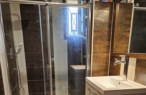 La chambre est équipée d'une salle de douche et WC privative. au salon on trouve une télévision à écran plat intégré d'un grand sonos edenwood, d'un accès Wi-Fi gratuit, une belle cuisine avec l'îlot central, une belle espace de repas, et un coin salon pour se détendre.