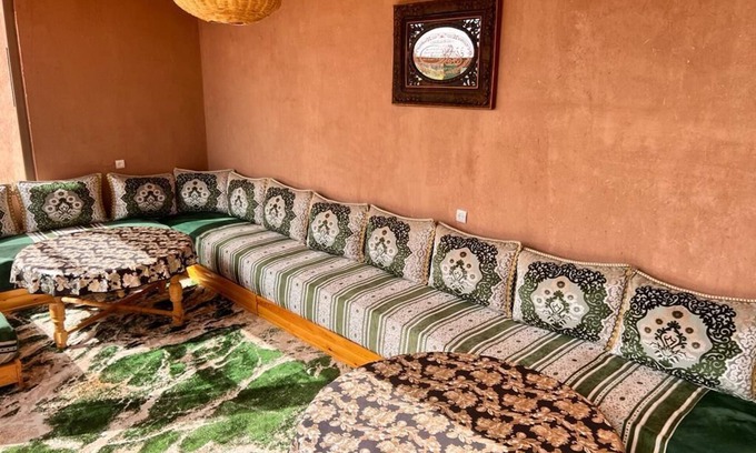 Pour le Riad contient six chambres , restaurant, salon marocain, tente berbère, piscine et terrasse avec une vue panoramique vers les montagnes de l'Atlas.