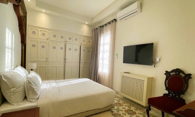 Inspired by Rabia Al Adawiyya, the revered mystic of divine love, this room offers a gentle and luminous atmosphere that embodies the essence of spiritual tranquility. The carefully chosen soothing tones and refined simplicity create an environment of serenity, making it an ideal space for contemplation and inner peace. Designed for those seeking to deepen their connection with the divine, it encourages introspection and spiritual renewal. In this haven of peace, every detail is crafted to facilitate moments of stillness, offering a refuge from the outside world and inviting the soul to rest. The room serves as a sacred space for those yearning to experience the transformative power of divine love, echoing Rabia s teachings of selfless devotion and the quest for purity of heart. It is the perfect retreat for anyone on a path of spiritual discovery and inner clarity.
